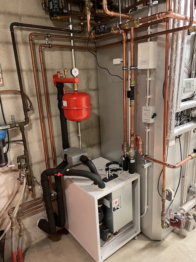 Putkitusta 4.11.2021 Maalämpöpumpun paluupiiriä pääsi heti putkittamaan mutta menopiiri oli jonkun aikaa kesken koska vaihtoventtiili oli epähuomiossa jäänyt tilaamatta. Koska tarkoitus on täydentää meidän kotisivuilla olevan aurinkojärjestelmän tilannekaaviota maalämmön tiedoilla niin putkistoon tuli lisäkomponentteina pari virtausmittaria ja lämpötila-anturia. Seurannasta enemmän seuraavalla välilehdellä.