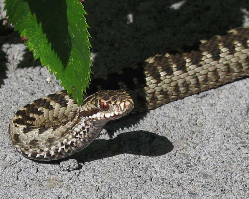 pihassa havaittu kyykäärme. Kyy syö sammakoita ja sisiliskoja, joten kohta ne taitavat vähentyä.