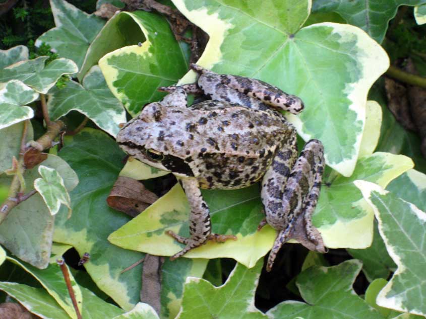 Sammakko muratinlehdillä: Muratti selvisi lumikasan alla hengissä ulkona talven 2007-2008. Sammakko on löytänyt muratinlehdistä itselleen suojaisan oleskelupaikan jonne ei ainakaan lentävien vihollisten katseet yllä. Tiedä sitten muista luikertelijoista ...